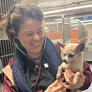 Youngest of 6 kids, Dr. Nevis occupied her mis-spent youth with mud-pies, craft projects, the family cat, Katrina, and innumerable pet mice, hamsters, rabbits, fish and inchworms. Once she accepted her destiny as the black sheep of the family, taking up animal medicine instead of becoming another engineer, she took to her heels upon graduating UIUC Vet Med in 1997, fleeing to the rolling green hills of Wisconsin where she cut her professional teeth in rural medicine. After 7 years, she returned to the Chicagoland suburb of her childhood, trying out every job anybody’d hire her for, from private practice to wildlife rehab, shelters to home euthanasia, and solo relief work. By far, her favorite way to spend time is in the dental chair or surgical suite, doing what she can to relieve suffering in animals, who show heroic endurance while providing unconditional love for their humans every single day.